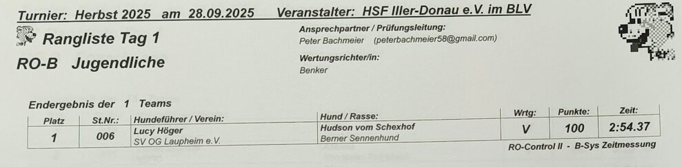 Info Rally Obedience Turnier 2025_06_01: Ergebnisse