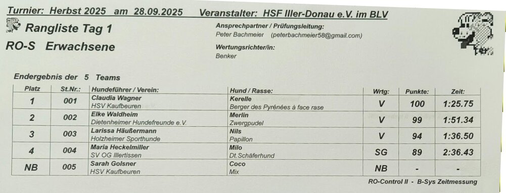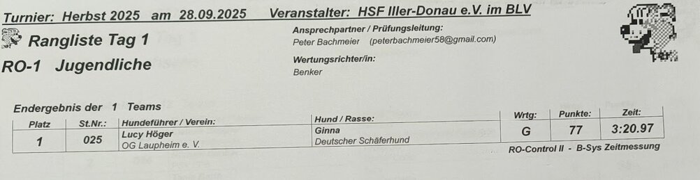 Ergebnisse Rally Obedience Turnier am 28.09.2025